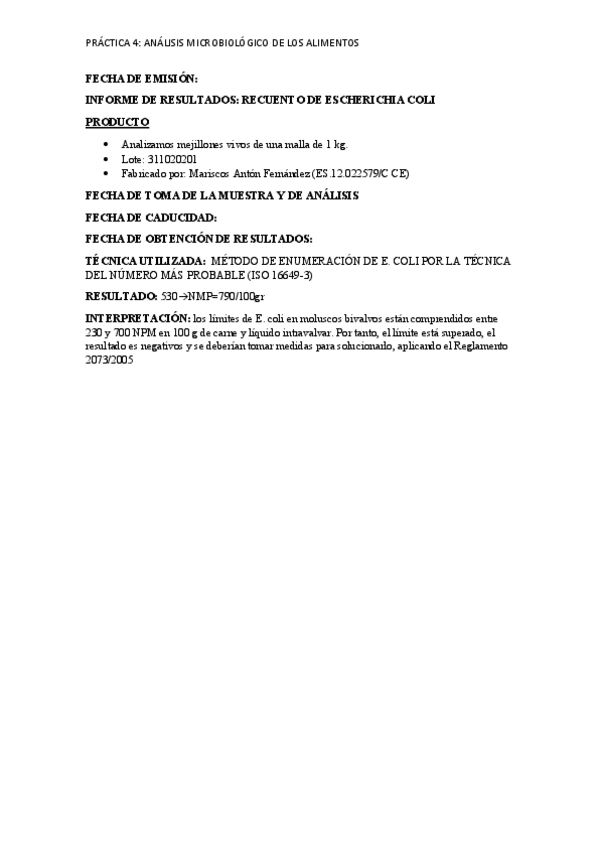 He publicado nuevos practicas de 4º Higiene Alimentaria: INFORME-4-HIGIENE.pdf