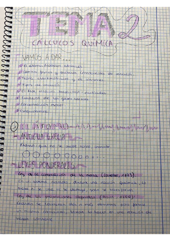 ÍNDICE: el átomo, cambios físicos y químicos, teoría cinetimolecular y de colisiones, tipos de reacción, el mol, ecuación de gases ideales, concentración molar y la estequiometría