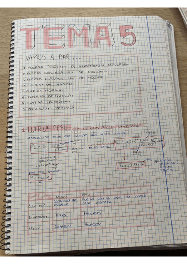 ÍNDICE: fuerza peso, fuerza eléctrica, fuerza elástica, fuerza de tensión, fuerza normal, fuerza de fricción, fuerza centrípeta, aplicación práctica