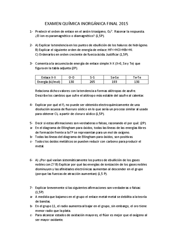 He publicado nuevos examenes de 2º Química Inorgánica Descriptiva: inorganica-2015.pdf