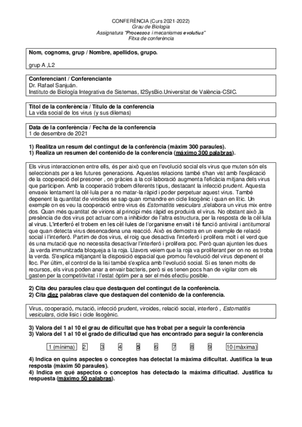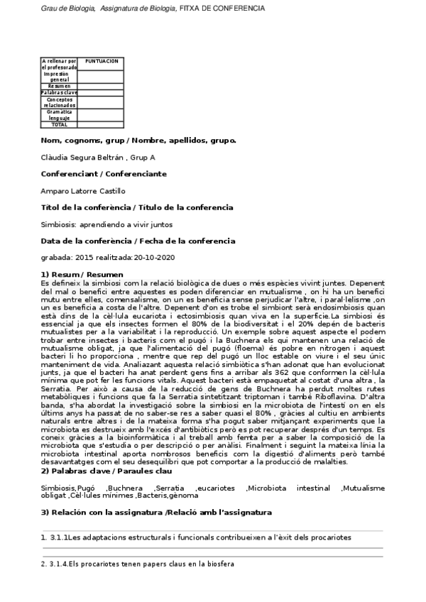 He publicado nuevos apuntes de 1º Biología: conferències 2020-2021