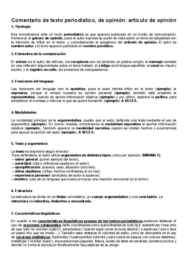 Apuntes perfectos de comentario de texto: artículo de opinión (género periodístico)
