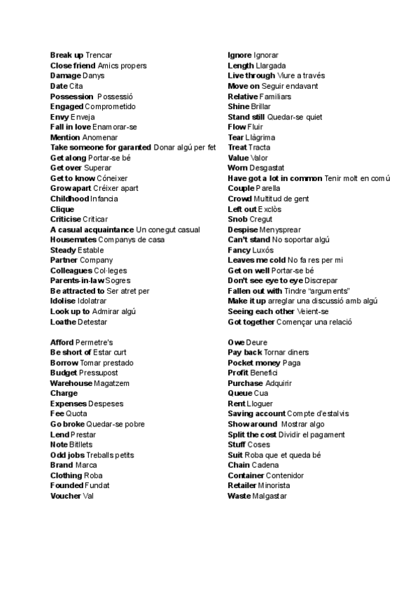 Vocabulario ingles 1r de bachillerato
