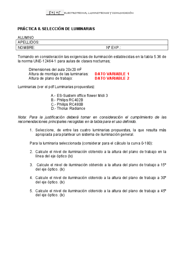 He publicado nuevos apuntes de 4º Electrotecnia, Luminotecnia y Comunicación: PRACTICA5.pdf
