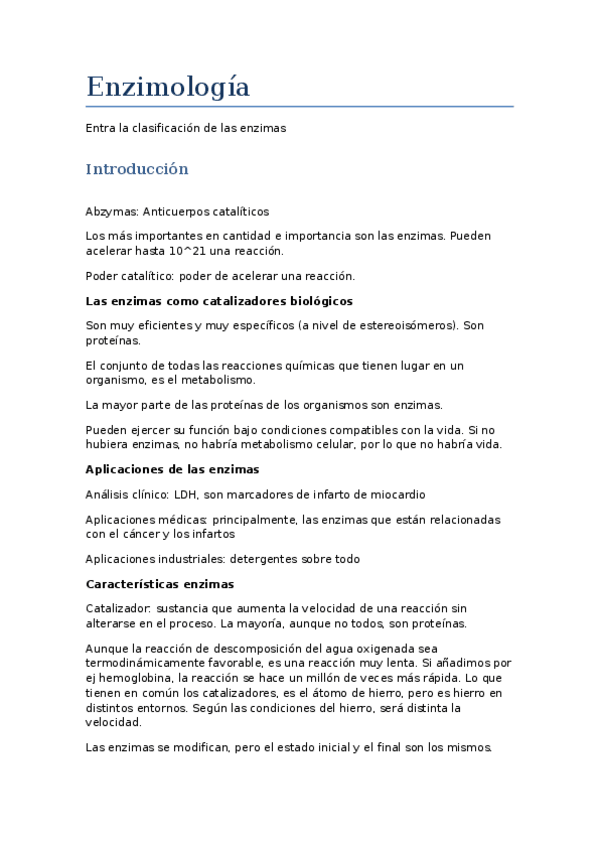 He publicado nuevos apuntes de 2º enzimología y Sus Aplicaciones: Tema 1