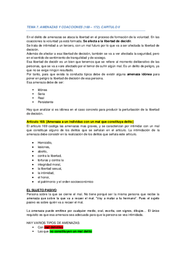 He publicado nuevos apuntes de 2º Derecho Penal I: TEMA 7. Amenazas y coaaciones.pdf