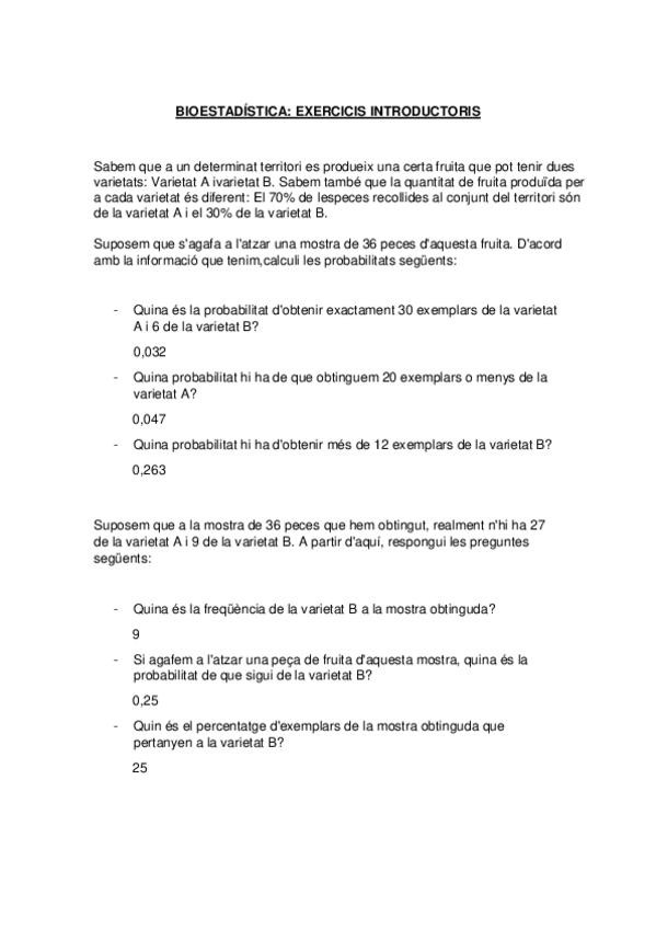 He publicado nuevos ejercicios de 1º Bioestadística i Matemàtica Aplicada: Bioest.pdf