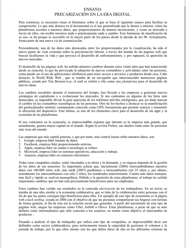 He publicado nuevos practicas de 2º Sociología del Trabajo y del Empleo: Ensayo: Precarización en la era digital