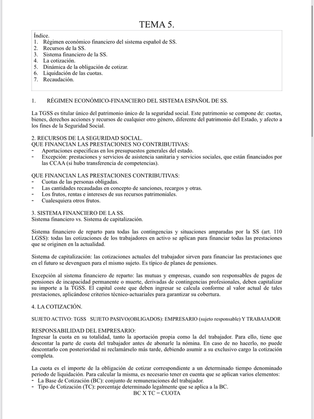 He publicado nuevos apuntes de 3º Derecho de la Seguridad Social I: Tema 5 resumen