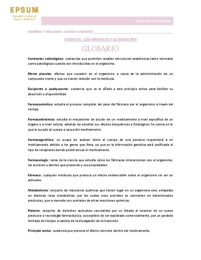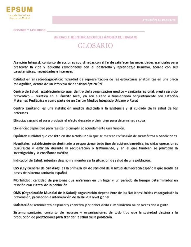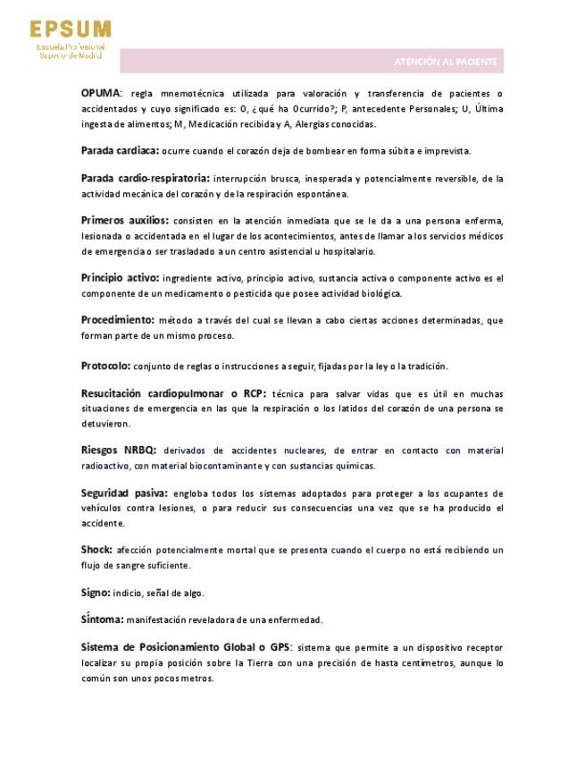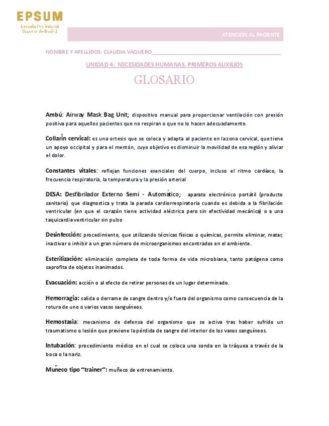 Glosario de atención al paciente. Necesidades humanas, primeros auxilios.