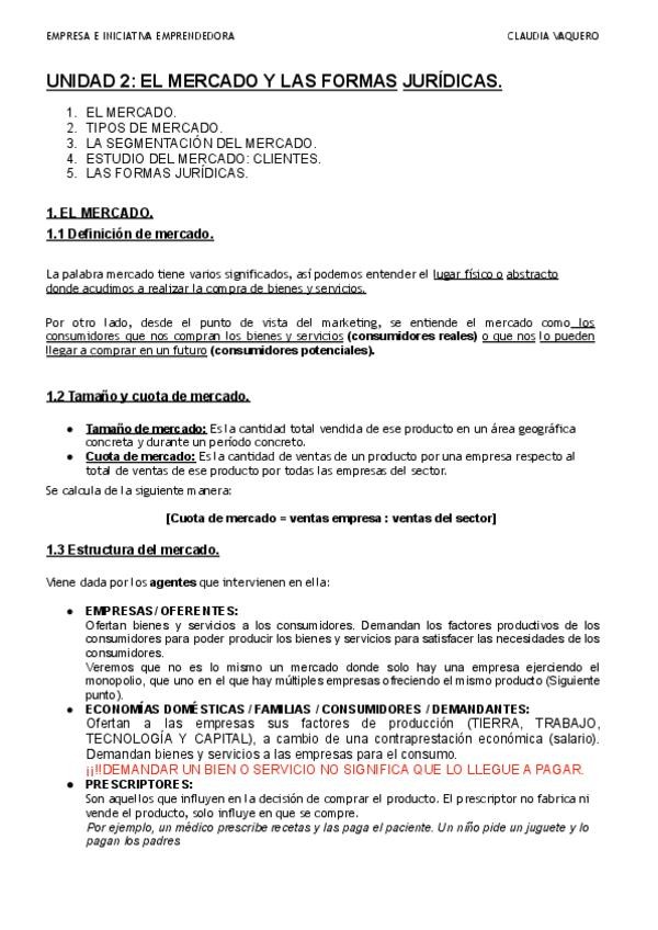 Apuntes de empresa e iniciativa emprendedora. El mercado y las formas jurídicas.