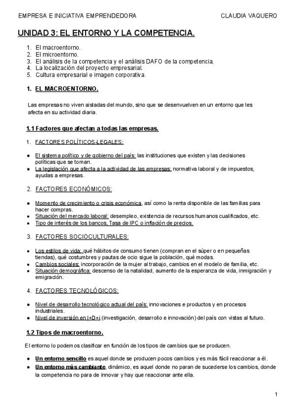 Apuntes de empresa e iniciativa emprendedora. El entorno y la competencia.