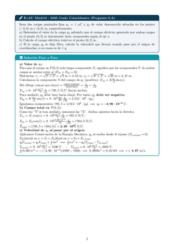 Ejercicios de la PAU de Madrid del bloque de Campo Eléctrico resueltos y explicados paso a paso.