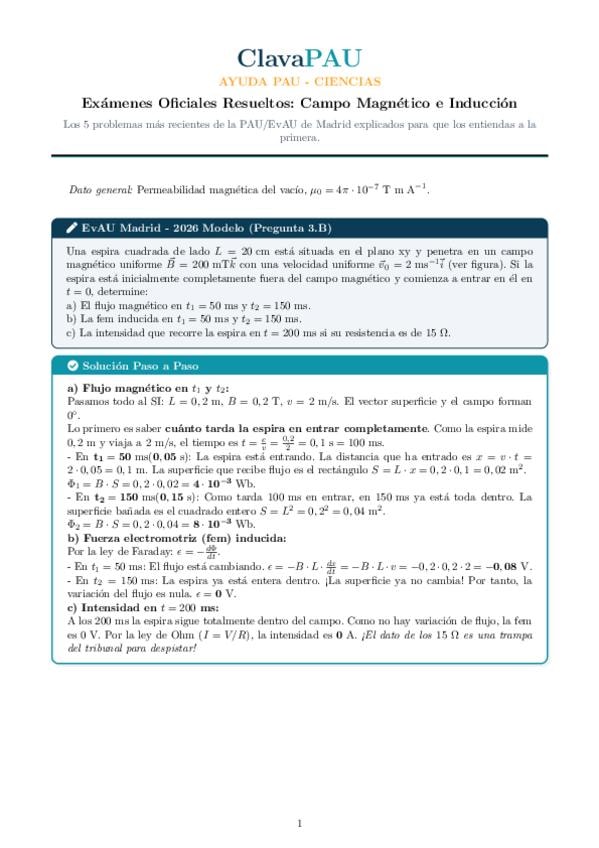 Ejercicios de la PAU de Madrid del bloque de Campo Magnético e Inducción Magnética resueltos y explicados paso a paso.