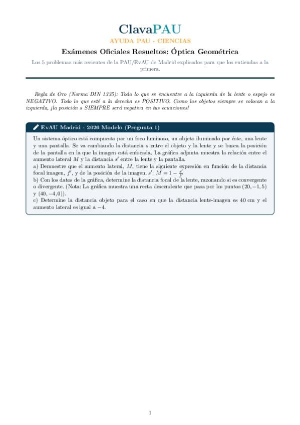 Ejercicios de la PAU de Madrid del bloque de Óptica Geométrica resueltos y explicados paso a paso.