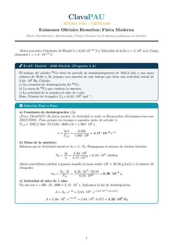 Ejercicios de la PAU de Madrid del bloque de Física Moderna resueltos y explicados paso a paso.