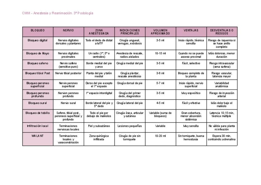 He publicado nuevos apuntes de 3º Anestesia y Reanimación: Tabla-bloqueos.pdf