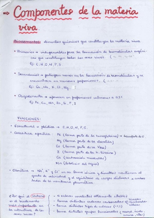 Apuntes completos del Tema 1 de Biología (Componentes de la materia viva) para preparar la EVAU / Selectividad. Incluye explicación clara de bioelementos, biomoléculas, agua y sales minerales, con esquemas y contenido organizado para estudiar rápido. ? Es