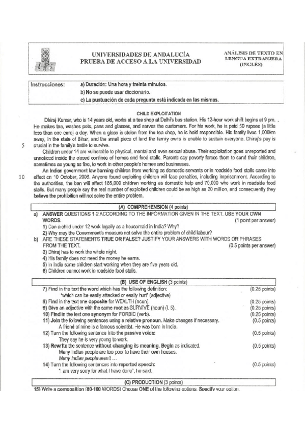 MUCHOS Exámenes de Selectividad INGLES