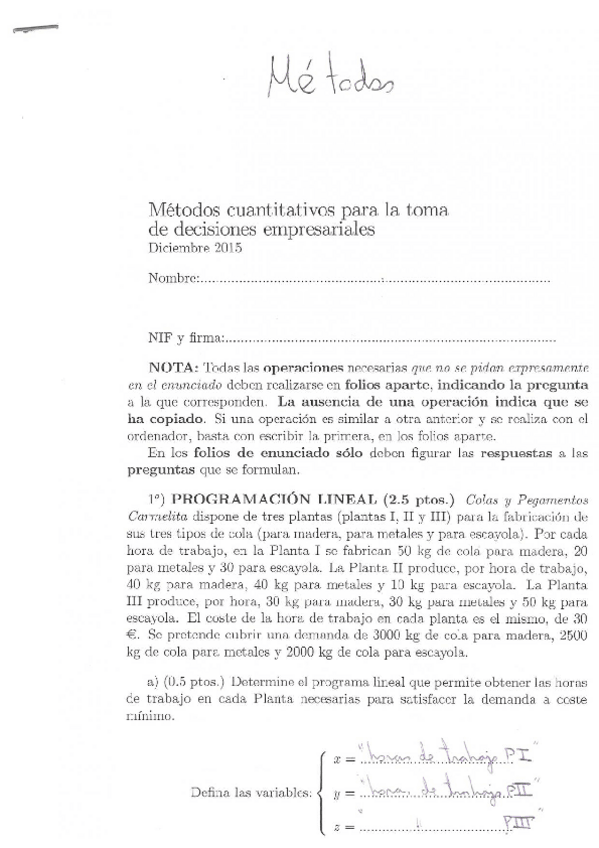 He publicado nuevos apuntes de 2º Métodos Cuantitativos para la toma de decisiones empresariales: OFICIAL EXAMEN MÉTODOS