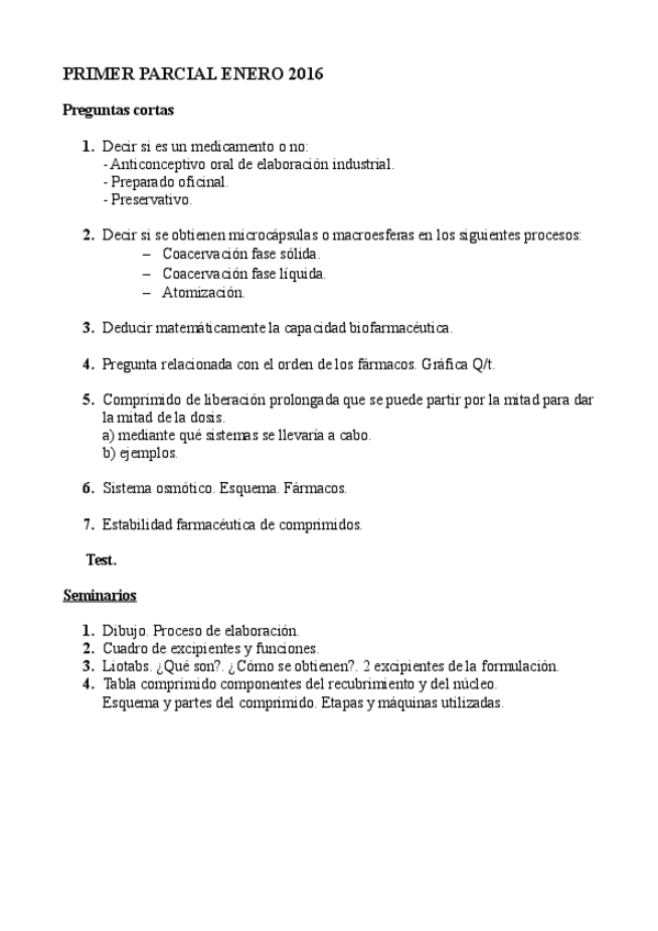 He publicado nuevos examenes de 4º Tecnología Farmacéutica II: parcial enero 2016.pdf