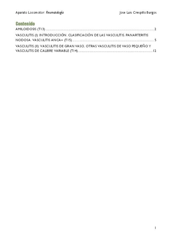 En estos apuntes se incluyen: - Amiloidosis (incorporado en el tema 13). - Vasculitis I y II (temas 17-18). Con el deseo que os sean de utilidad!!!
