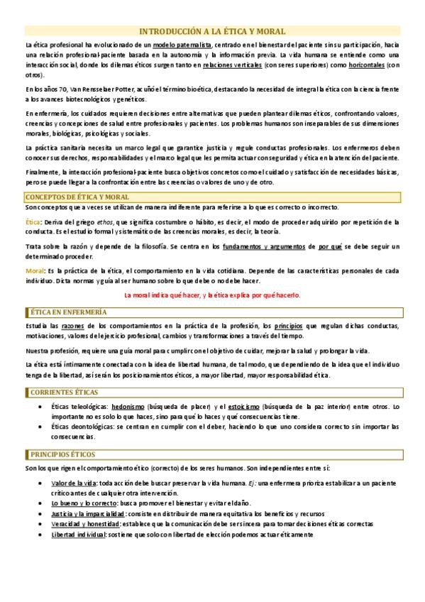 Apuntes tema 1 Fundamentos: Introducción a la profesión de enfermería