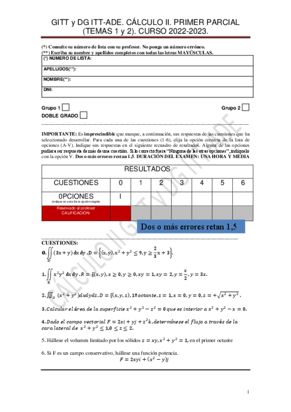 He publicado nuevos examenes de 1º Cálculo II: CALCULO-II-PRIMER-PARCIAL-GITT-y-DG-ITT-ADE-29-marzo-2023.pdf