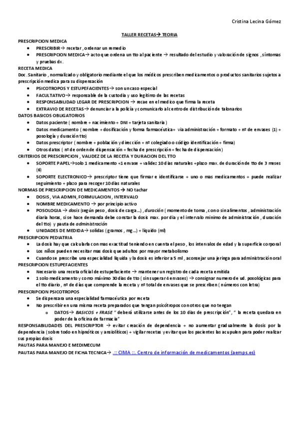 He publicado nuevos apuntes de 3º Farmacología general y procedimientos terapéuticos: RECETAS TALLER
