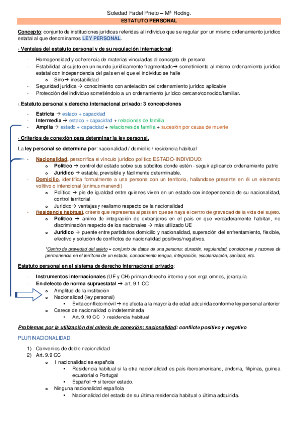 En mi perfil disponeis de esquemas en cuanto a la aplicación de la legislación internacional en los casos prácticos, más útil para el segundo cuatri que para el primero aunque también sirven para el primero. Pero digo lo del 2º porque son esquemas de qué aplicar para cada materia, por ejemplo, un esquema-resumen para saber qué aplicar en nulidad matrimonial separación o divorcio, o en sucesiones, y así.