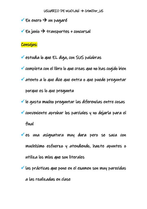 Si tienes a algunos de los profesores que tuve yo, olvidate de coger apuntes o ten de referencia los mios. Están completísimos, no les falta ni una tos del profesor. Ejemplo: mena bernal, quiñones, enrique ramos, vida carrión, carlos fidalgo, etc. Os aseguro que están geniales, con todos ellos tengo matrícula de honor, salvo en mercantil que tengo notable.! Ánimo y cualquier duda nos vemos en twitter!!!!!! @sole96fp