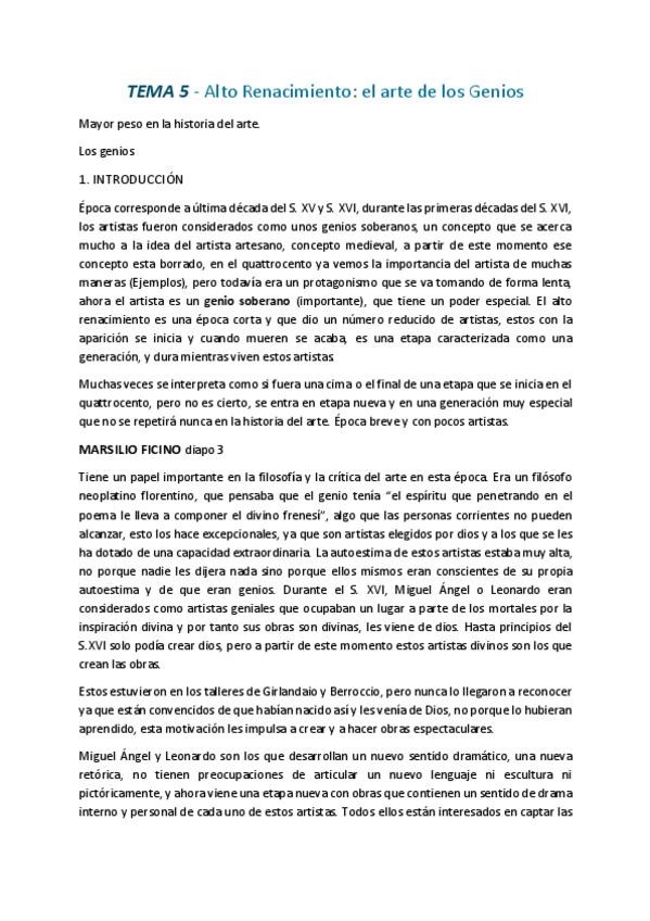 Apuntes de la etapa del alto renacimiento en italia