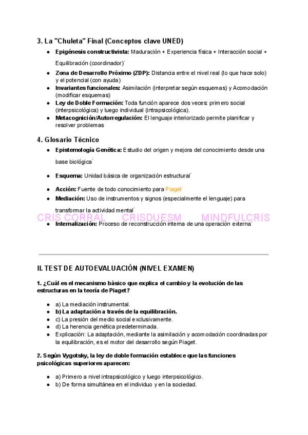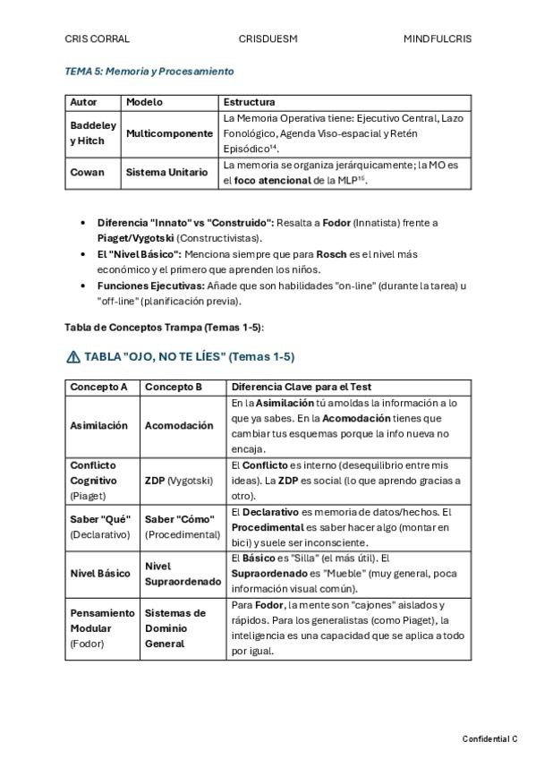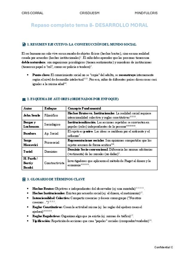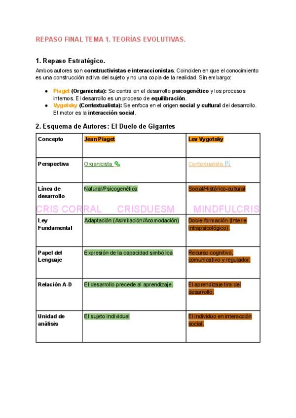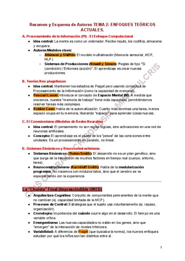 Repaso completo Tema 2- esquema por autores y teorías, chuleta final, glosario y preguntas tipo test con la respuesta correcta explicada breve.