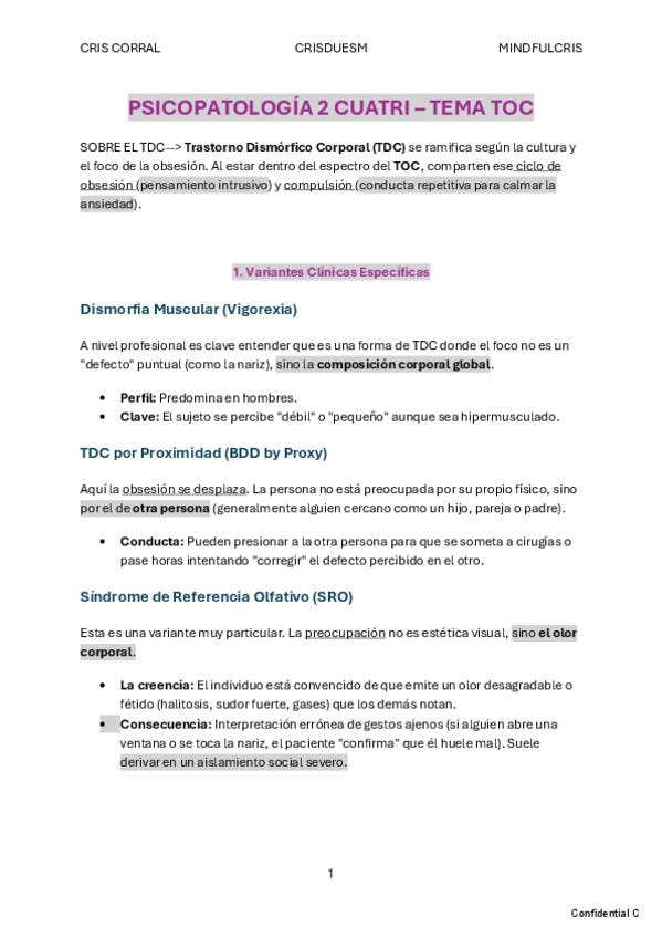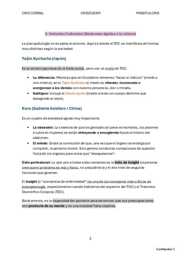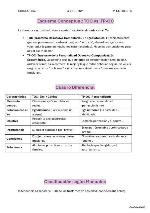 un extra de ayuda para entender bien TDC, dentro del capítulo del TOC. Referencia a los tipos de insight y cuadros diferenciales con la egodistonía y egodistonía