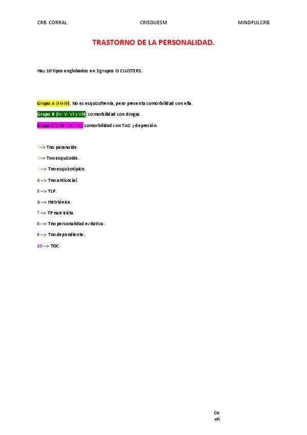 esquema sobre los tipos de trastorno de personalidad / los 3 clusters Ayuda para el estudio Tema 13