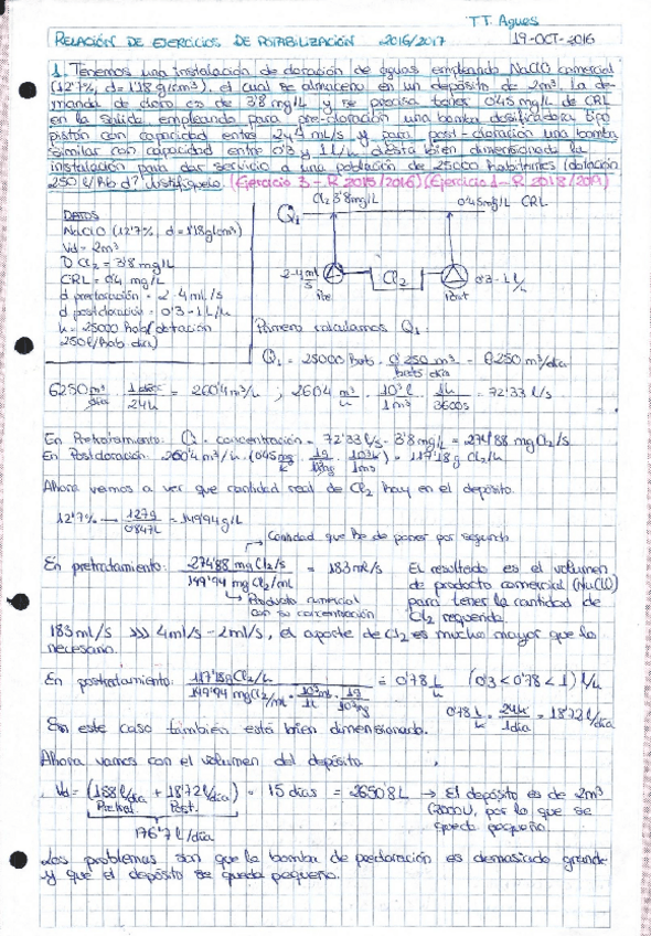 He publicado nuevos ejercicios de 3º Tratamiento y Tecnología de Aguas: EJERCICIOS POTABILIZACIÓN