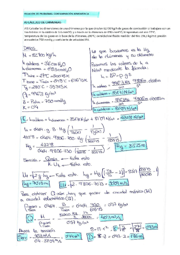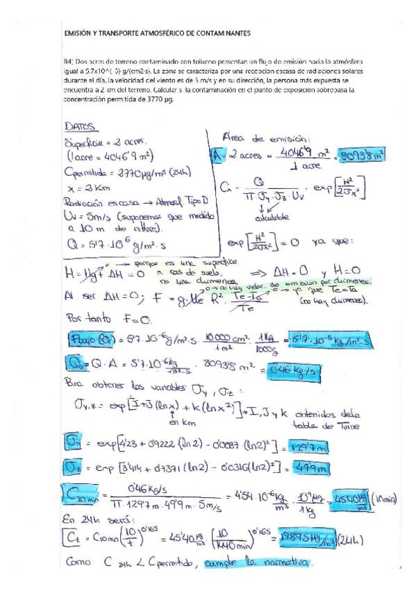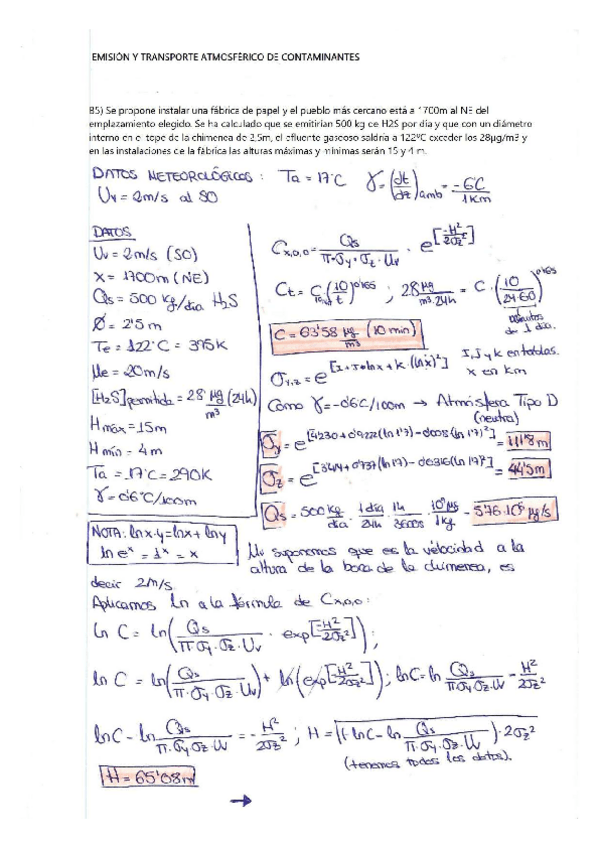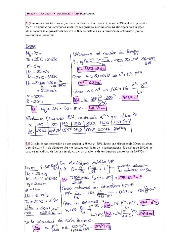 Contaminación atmosférica. Ejercicios