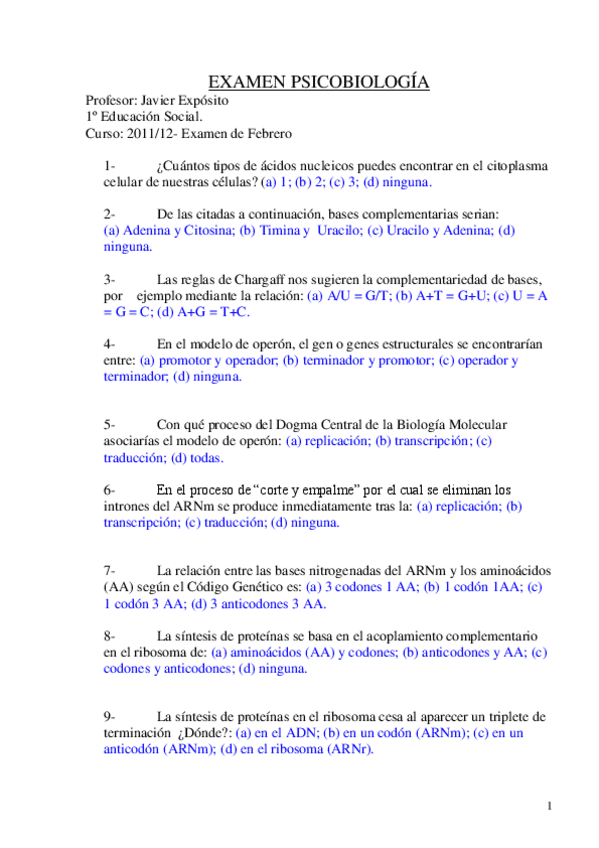 He publicado nuevos examenes de 1º Psicobiología: Psicobiología. Es. Ucm