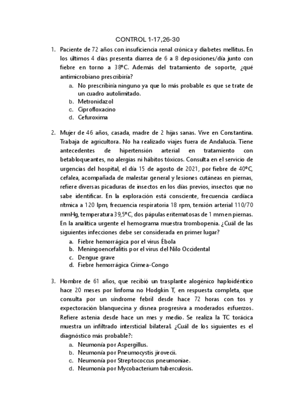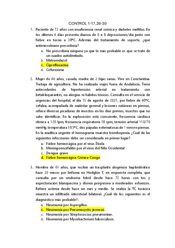 He publicado nuevos examenes de 3º Patología Médica de las Enfermedades Infecciosas y del Sistema Inmune. Atención Primaria.: RESPUESTAS-CONTROL-1-17-26-30-INFEC.pdf