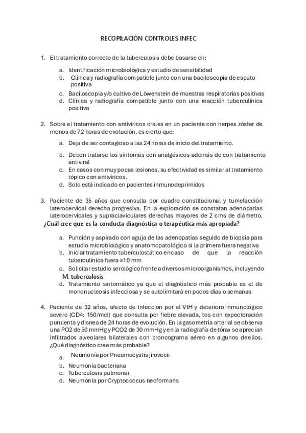 He publicado nuevos examenes de 3º Patología Médica de las Enfermedades Infecciosas y del Sistema Inmune. Atención Primaria.: RECOPILACION-CONTROLES-INFEC-CON-SOLUCIONES.pdf