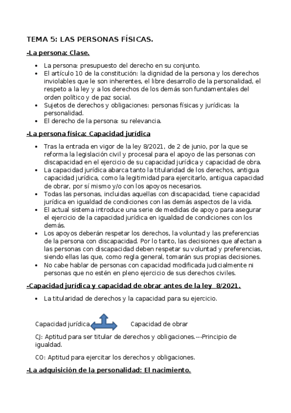 He publicado nuevos apuntes de 1º Elementos de Derecho Privado: TEMA-5 PERSONAS FÍSICAS I. Derecho privado.docx