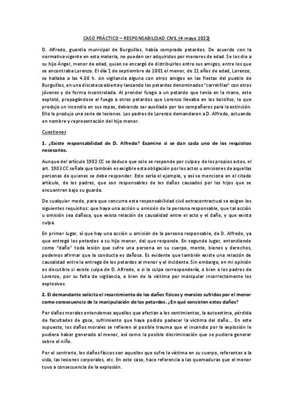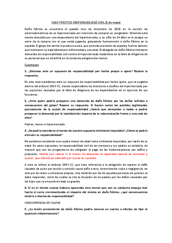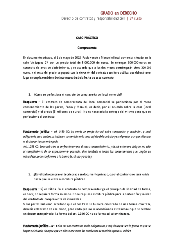 Prácticas Derecho Civil: Contratos y RC