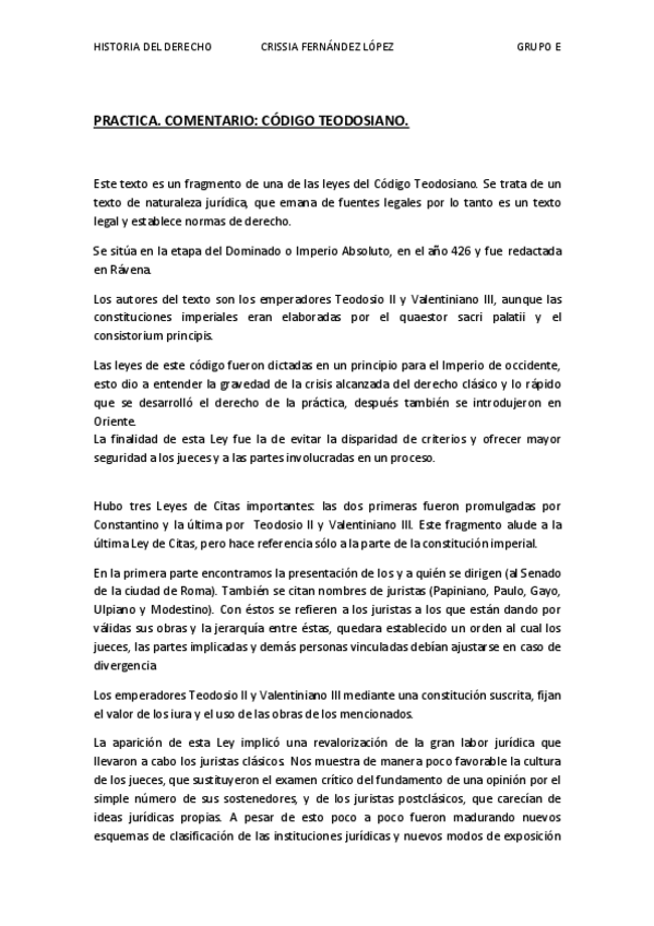 He publicado nuevos practicas de 1º Historia del Derecho: comentario teodosiano.pdf