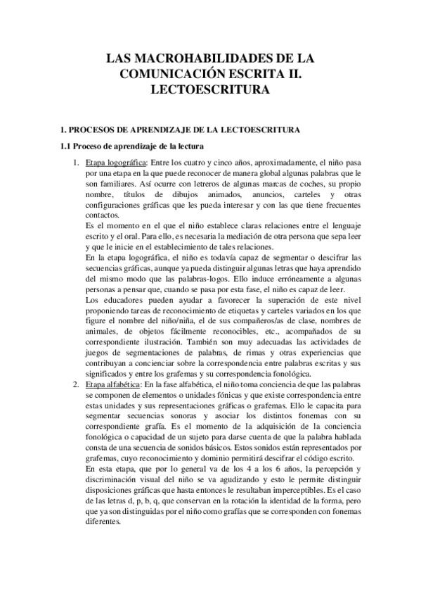 He publicado nuevos apuntes de 2º Desarrollo de Habilidades Lingüísticas y Su Didáctica en Educación Primaria: Las macrohabilidades de la comunicación escrita II. Lectoescritura.pdf