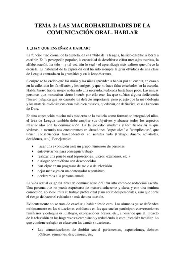 He publicado nuevos apuntes de 2º Desarrollo de Habilidades Lingüísticas y Su Didáctica en Educación Primaria: TEMA 2. LAS MACROHABILIDADES DE LA COMUNICACIÓN ORAL (HABLAR).pdf