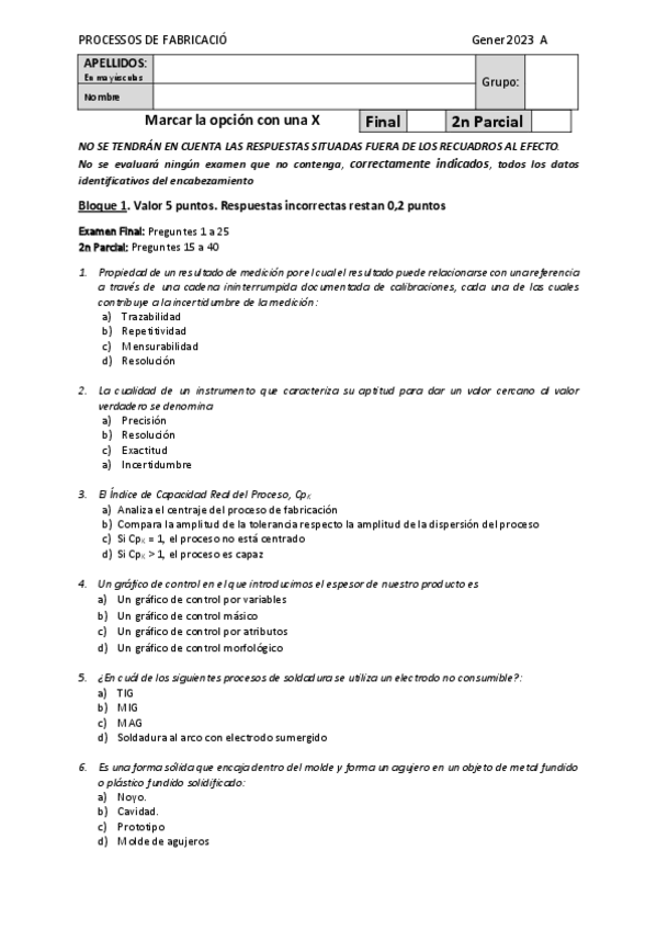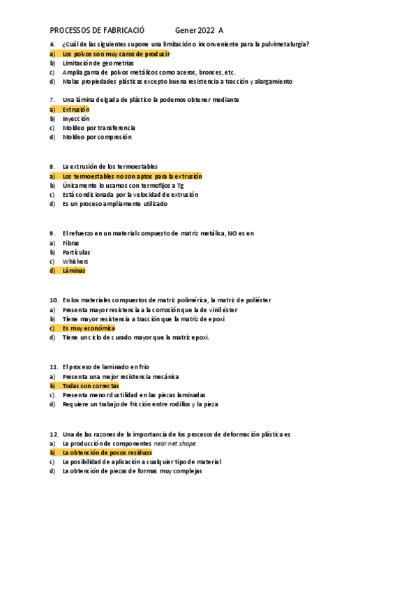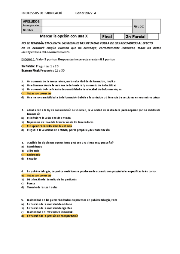He publicado nuevos examenes de 3º Processos de Fabricació: Test-Solucionado-Examen-Final-2023.pdf