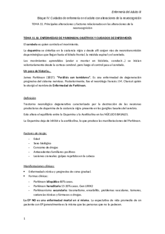 He publicado nuevos apuntes de 3º enfermería del Adulto Iii: Tema 11.10. Parkinson.pdf