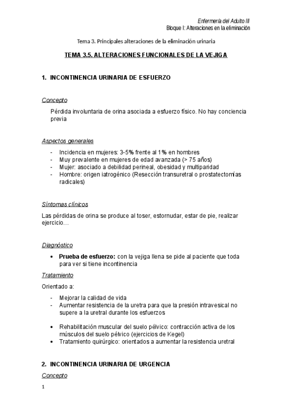 He publicado nuevos apuntes de 3º enfermería del Adulto Iii: Tema 3.5 Alteraciones funcionales de la Vejiga.pdf