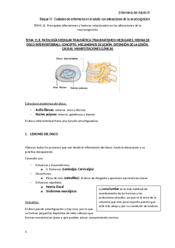 He publicado nuevos apuntes de 3º enfermería del Adulto Iii: Tema 11.8. Patología medular traumática.pdf