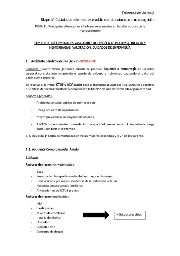 He publicado nuevos apuntes de 3º enfermería del Adulto Iii: Tema 11.3. Enfermedades vasculares del encéfalo.pdf
